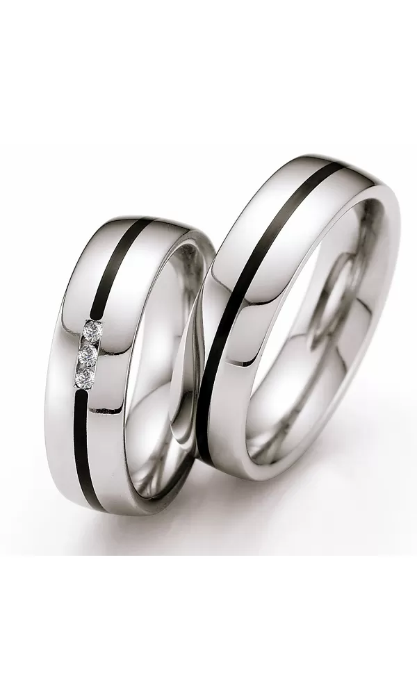Snubní prsteny s keramikou a diamanty vyrobeny z vysoce kvalitní chirurgické oceli s vkládaným černým keramickým proužkem v sametově matné povrchové… Celý popis