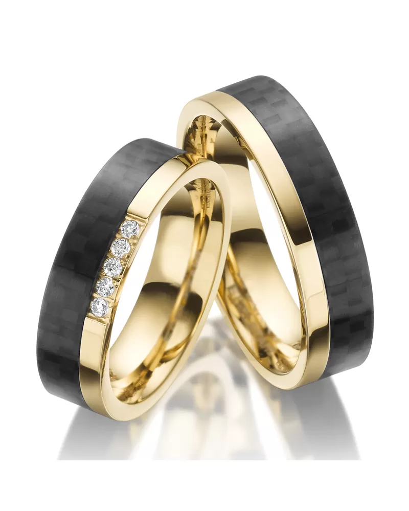 Co nejde přehlédnou je karbon v černé barvě, který dělá z těchto prstenů neodolatelný model. Karbon je slitina kovů, která se používá v mnoha průmyslových odvětvích nevyjímaje šperkařství. Jedná se o velmi lehký a pevný materiál černé barvy.