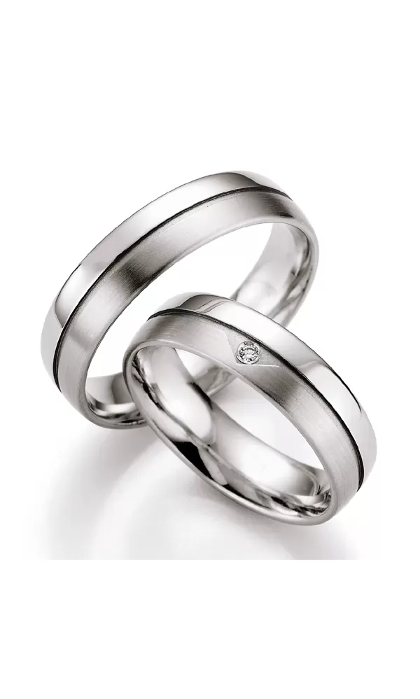 Snubní prsteny bílé zlato vyrobeny z čtrnáctikarátového bílého zlata - 585/000 v mírně půlkulatém profilu v kombinované povrchové úpravě lesk - sametový mat. V dámském prstenu je vsazen do trojúhelníku jeden kulatý diamant briliantového brusu. Diamanty oplývají svou krásou a vlastnostmi, které jsou oproti jiným kamenům bezkonkurenční. Je to nejtvrdší nerost, který nikdy neztratí svou hodnotu. Diamant je král všech drahokamů a tedy i jedním z nejcennějších a proto se vyplatí do šperků s diamanty investovat a především u snubních prstenů, které jsou na celý život! Vsazování diamantů provádějí naši nejzkušenější mistři zlatníci ručně pod mikroskopem s přesností na 0,01mm a proto nehrozí vypadnutí kamínků jako to bývá u strojně vyráběných snubních prstenů. Snubní prsteny mají vnitřní fit profil - zaoblení vnitřní strany prstenů pro příjemnější nošení.
