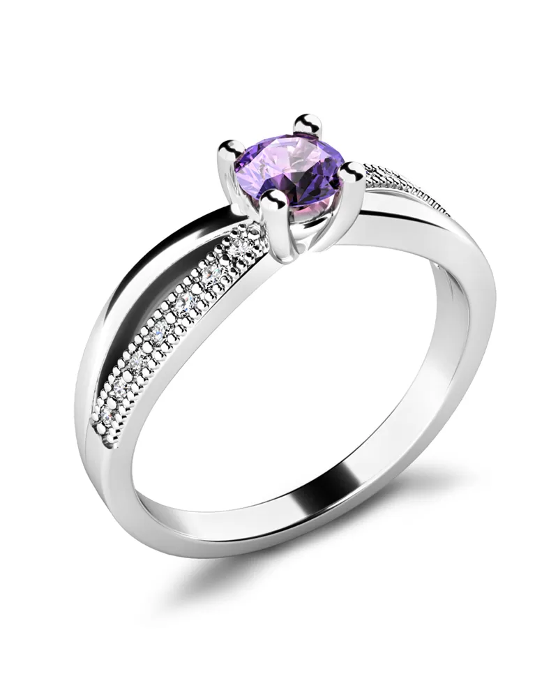 Krásný zásnubní prsten - soliter s jedním kamenem je vyroben z bílého čtrnáctikarátového zlata - 585/1000 v lesklé povrchové úpravě. Prsten má jeden kulatý zirkon vsazený do čtyřkrapnové korunky. Zirkon je vybroušený briliantovým brusem...
