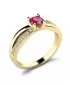 Elegantní prsten je vyroben ze žlutého čtrnáctikarátového zlata - 585/1000 v lesklé povrchové úpravě. Prstenu dominuje středový kulatý turmalín,… Celý popis
