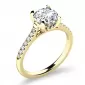Tento zásnubní prsten je vyroben ze žlutého čtrnáctikarátového zlata - 585/1000 v lesklé povrchové úpravě. Prsten má jeden hlavní dominantní diamant kulatého briliantového brusu, který je uchycený do čtyřkrapnové korunky. Toto uchycení pomůže diamantu dokonale vyniknout jeho kráse a brusu. Krásným detailem je vsazení diamantů i na boku korunky. Po stranách v obroučce prstenu je vsazeno 14 diamantů, které prsten zjemňují. Zásnubní prsten ohromí z každé strany. Všechny diamanty jsou vybroušeny briliantovým brusem, který zajišťuje maximální brilanci vybroušených facet, dokonale odráží světlo a neuvěřitelné září z každého úhlu pohledu! Díky skladbě a stylově čistému vsazení diamantů, vyniká prsten krásnou brilancí kamenů. Vsazování diamantů do zásnubních prstenů provádějí naši nejzkušenější mistři zlatníci ručně pod mikroskopem s přesností na 0,01mm a proto nehrozí vypadnutí kamínků jako to bývá u strojně vyráběných zásnubních prstenů.